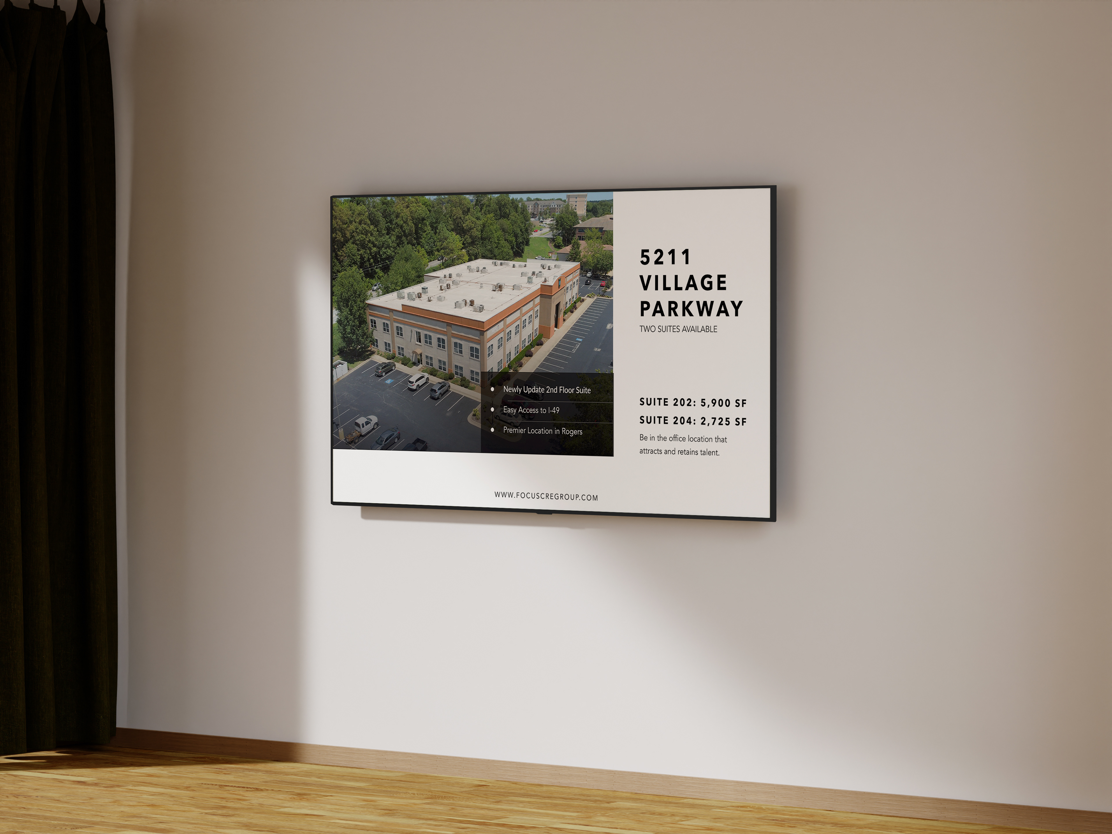 Designed large-format banners and various print and digital signage for commercial properties managed by Focus Commercial Real Estate. These signs highlighted key property details with a professional and visually striking approach, ensuring maximum visibility for potential tenants and buyers.